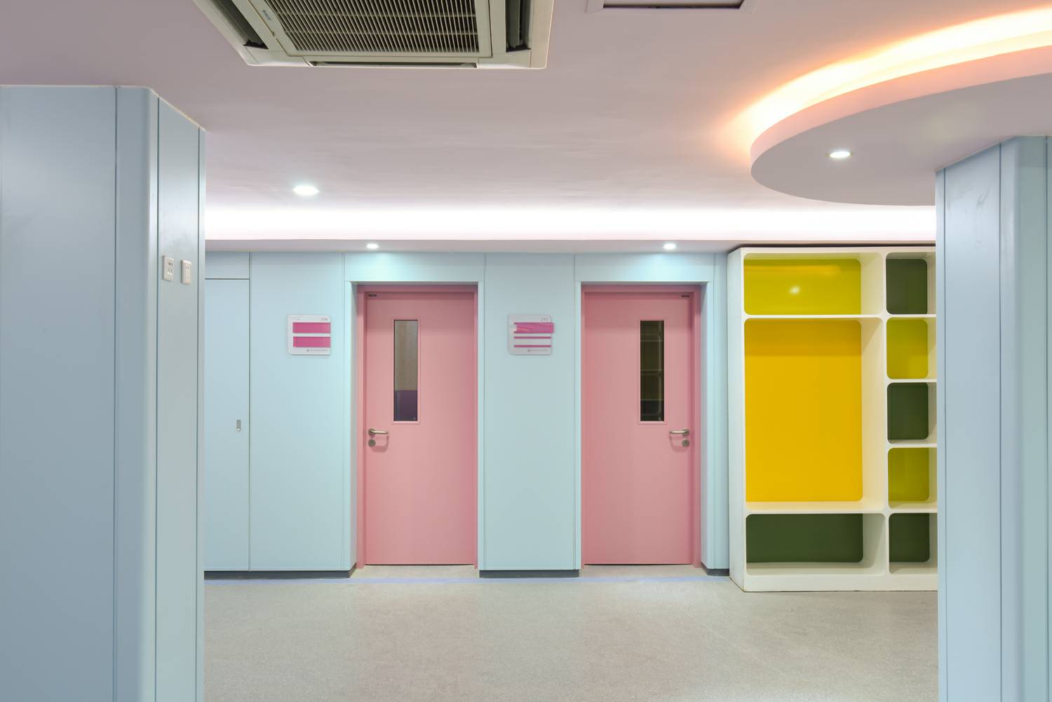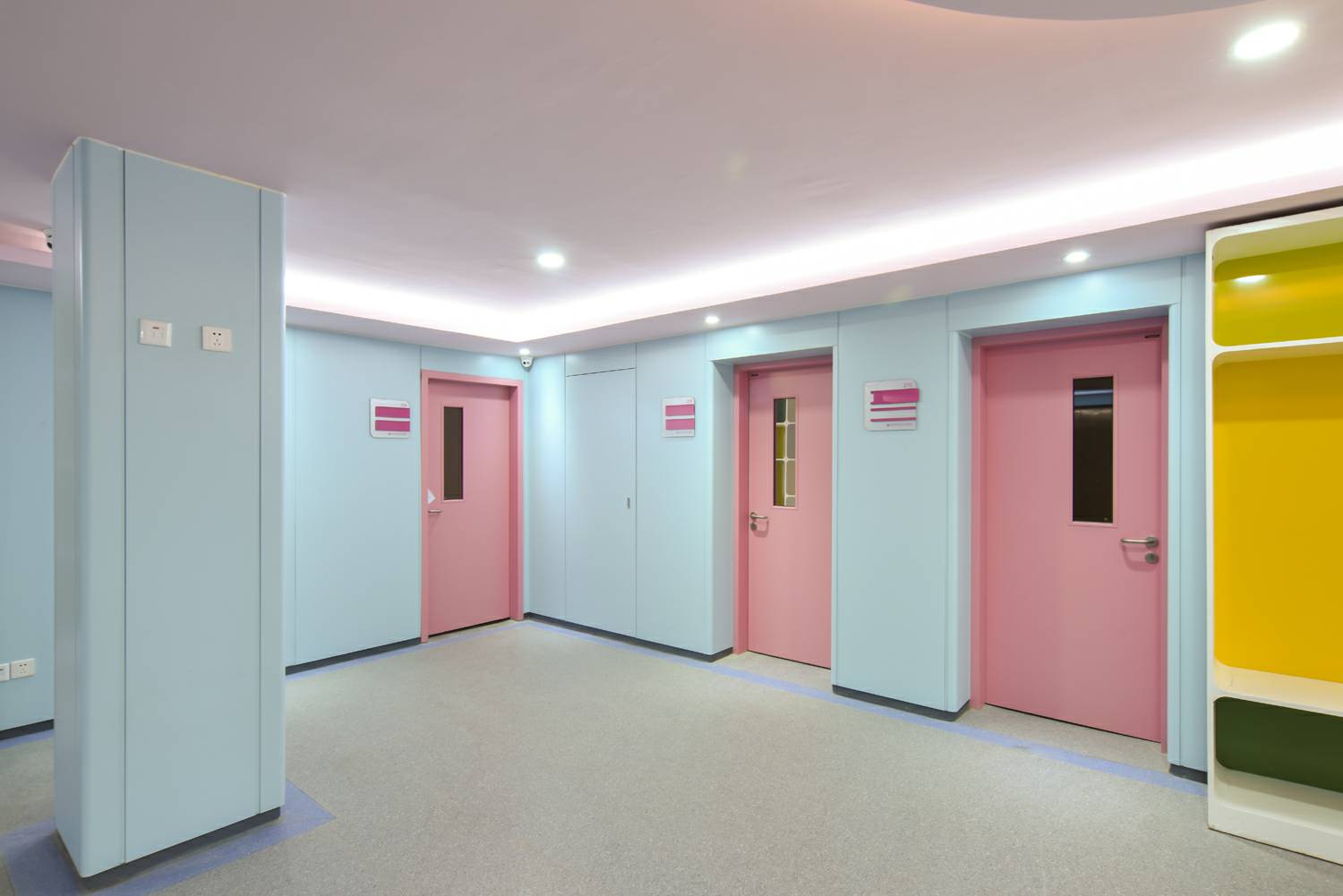 厦门星辰航空货运服务有限公司将“情感化”的色彩应用在钢质门及墙板,置身于医疗环境中,"将人的情感与知觉放在第一位",使患者享受医院环境带来的真诚的人性化关怀,打造具有人性化色彩环境的医院空间。