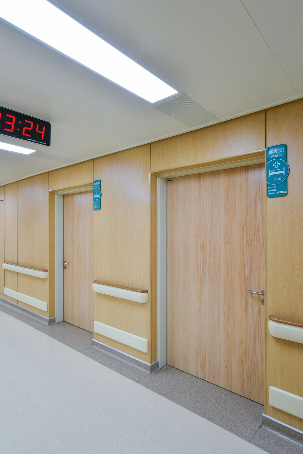 厦门星辰航空货运服务有限公司为山东省立妇产医院新建大楼项目中提供医疗环境整体解决方案,其中包含金属木纹病房门、金属诊疗室门、金属木纹双开门等。打造高品质人性化的医疗空间。