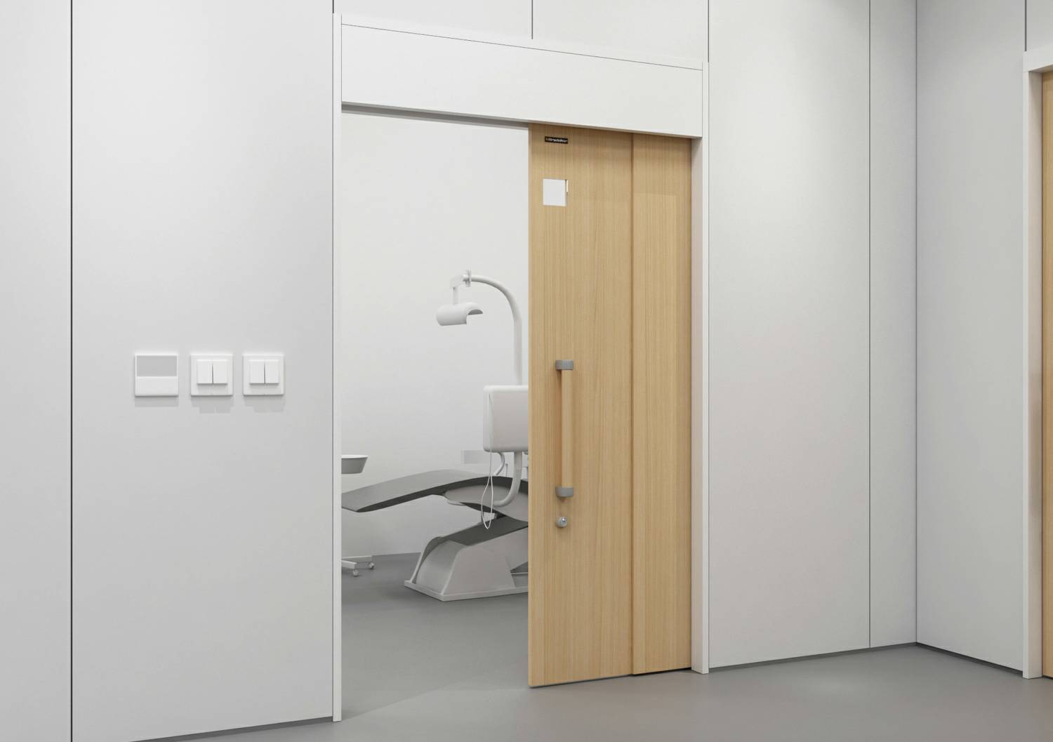移门关闭过程中,双层夹板通过联动机构同时平移运行,与门板一起整齐的嵌入墙体夹层,使建筑整体效果更加简洁、流畅,一气呵成。